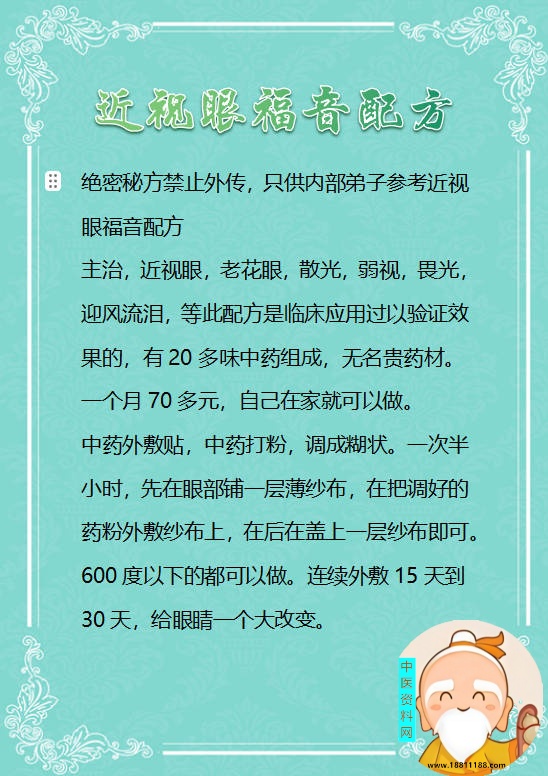 绝密秘方禁止外传,只供内部弟子参考近视眼福音配方