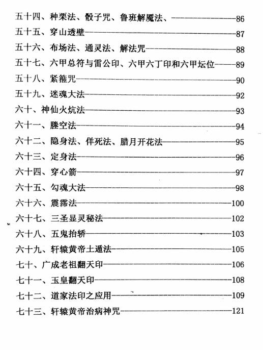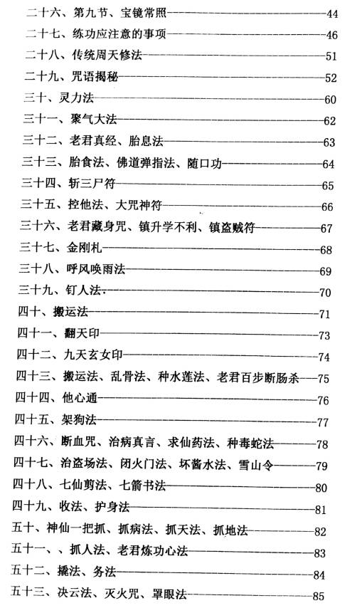 内容简介:通灵大法、老君练功心法、神仙一把抓务法、灵力法、收法、撬法、护身法、送法、弹指大法、符篆、隐身、定身、迷魂大法、影人法、罡步、收煞、翻天印、他心通,、轩辕帝土遁法等等。