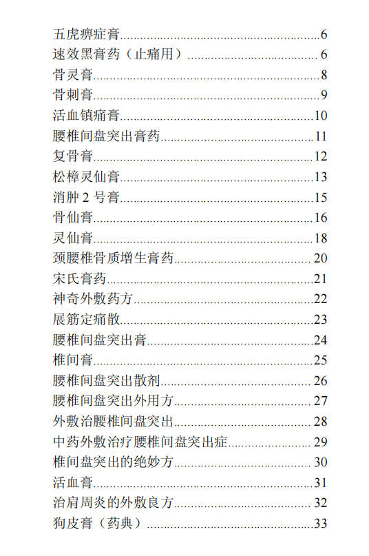 腰椎间盘突出膏…………………………………………..24