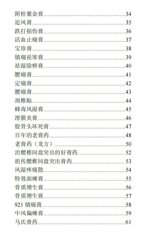 跌打损伤膏………………………………………………….36
